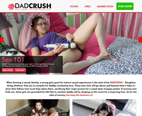 Dadcrush is a unique porn site that brings in a wide array of hot videos featuring super sexy models with delightful bodies. Most of these girls are at that age when they are in an exploratory frame of mind, sexually- 18 to 21years! All of them have one thing in common– a soft spot for hard old dick. However, they only fantasized to get fucked by their step-dads. These slutty teens are ready to sacrifice their virginity to get the taste of their step papa’s cock rather than that of a fumbling teen boy’s.