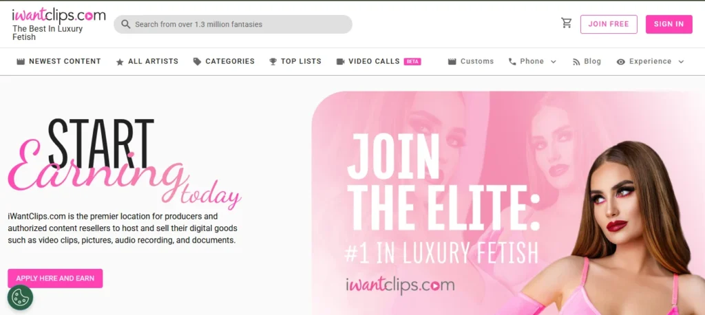 IWantClips is a creator-focused adult platform launched in 2014, enabling independent models (called Artists) to sell videos, audio clips, photos, custom content, and digital items directly to fans. It emphasizes fetish and niche content, with tools for custom requests, pay-per-view messaging, and integrated services like phone chat via iWantPhone.