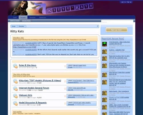 Kitty Kats is an adult forum where you will be able to put your hands on some crazy porn pictures and videos for free. This foum is divided into 12 boards: The Girls of Kitty-Kats( webcam models), Hot Outfits (sexy girls in sexy outfits), Titty-Kats (big boobs), Hardcore porn DVD rips and more, Amateurs for all their wives, girlfriends and wannabe porn models, Fine Art Girls – with HQ pics & videos from famous paysites, Shemale, All Kinds of Fetish, Celebrities , Magazines, Cartoons & Comics alongside with Entertainment, Kitty-Katts Workshop and Kitty-Kats Clubs.